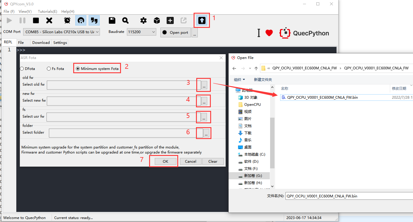 5、Select the file system bin file, i.e., the partition storing user files. You need to select the customer_fs.bin