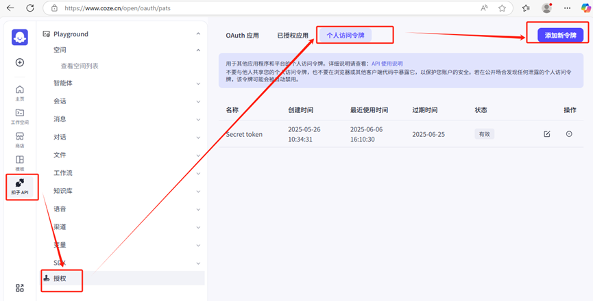 Create a personal token and configure it into the module demo. Refer to the following figure for the specific process.