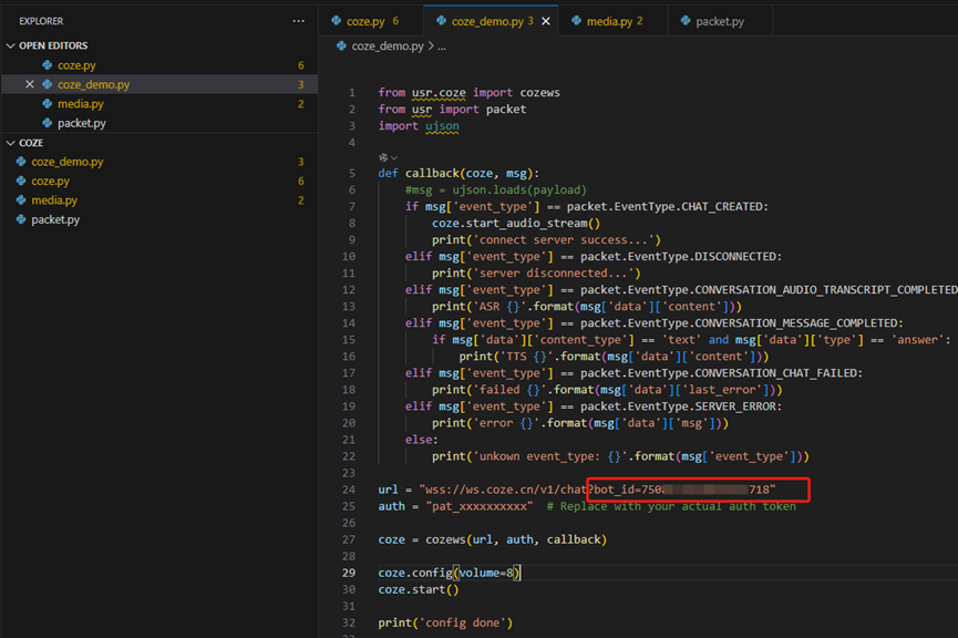 If Coze is not registered, normal interaction cannot be carried out. You need to go to the Home - Coze to register the device. After registration is completed, we need to copy the AI agent