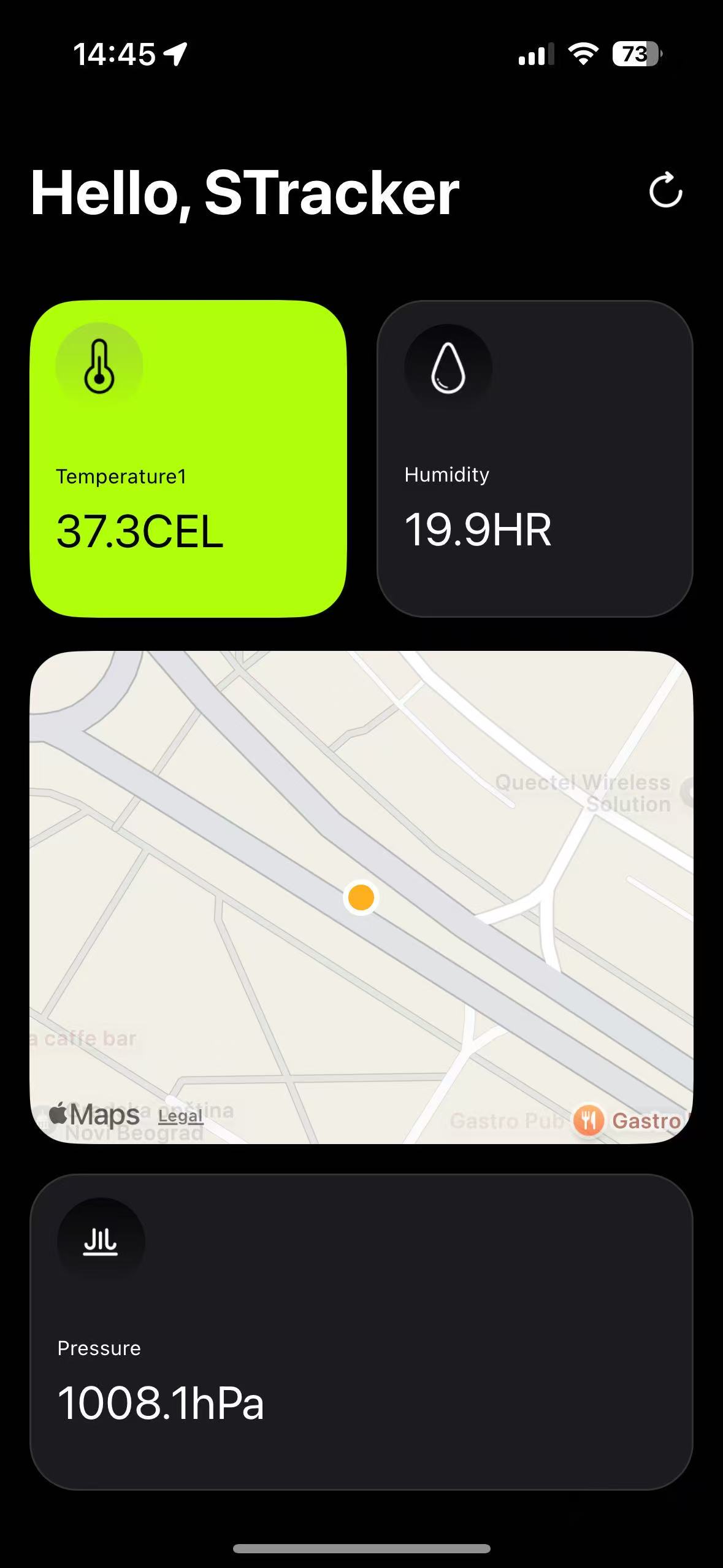 - If you need to update the sensor data or LBS location, click the refresh button in the upper right corner of the control panel.