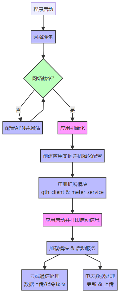 wait_network_ready函数检查网络状态,若未就绪则配置 APN 并激活。