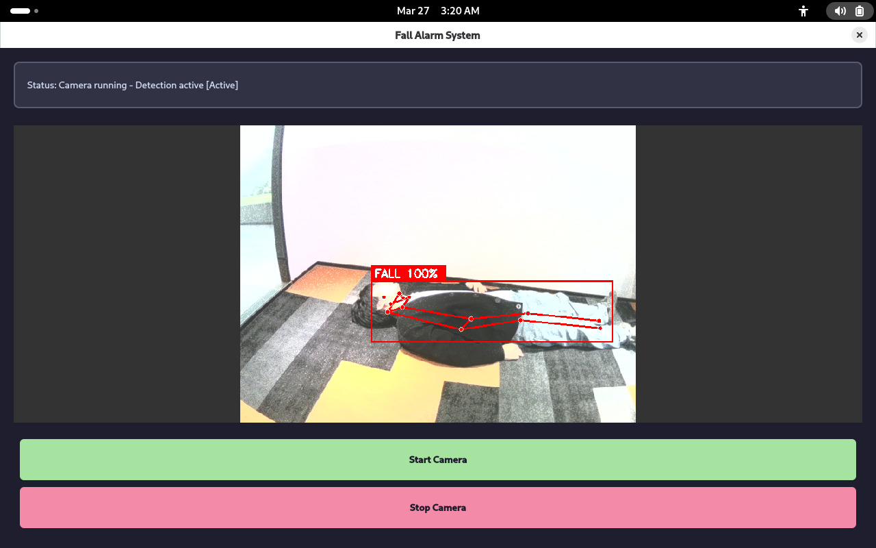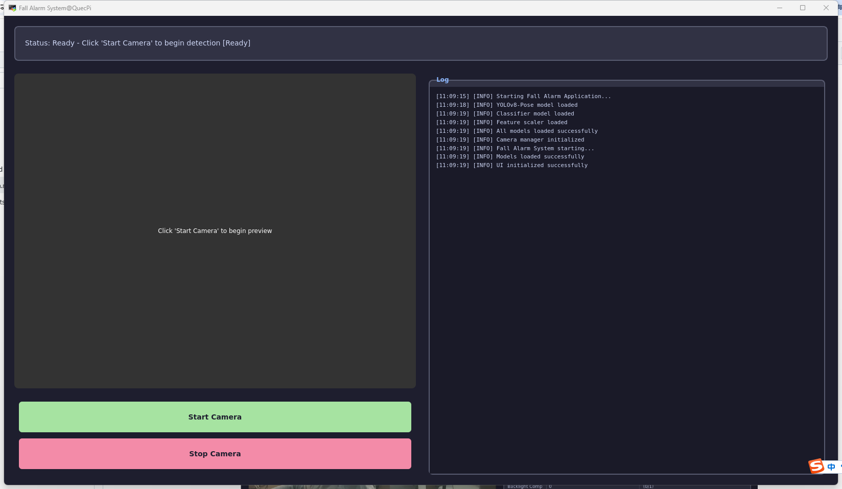 | Camera Preview Area | Real-time display of camera captured footage, with detected humans and fall status annotated |