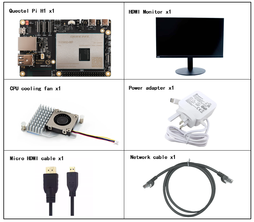| Quectel Pi H1 Single-Board Computer | 1 | Quectel Pi H1 Smart Ecosystem Development Board |