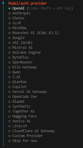 After the first installation, the configuration wizard process must be completed; otherwise, OpenClaw cannot run normally. Execute the following command to start the configuration wizard and install the gateway daemon:
