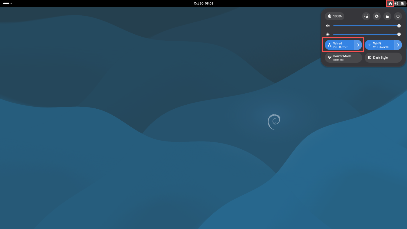 After successful connection, a network connection icon will appear in the upper right corner of the desktop, and the system will automatically assign an IP address.