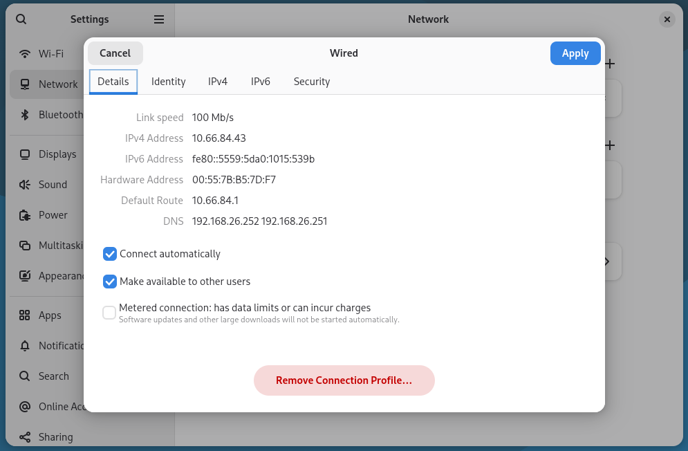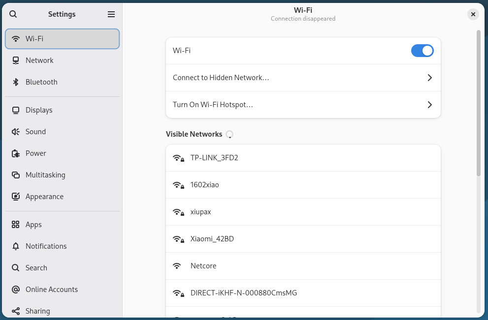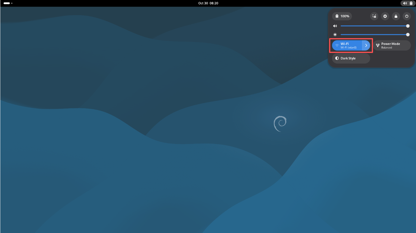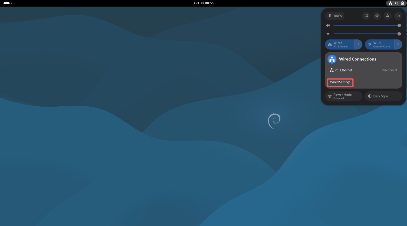 - Click on the status bar in the upper right corner of the gnome desktop, and then click on the arrow on the right side of WIFI