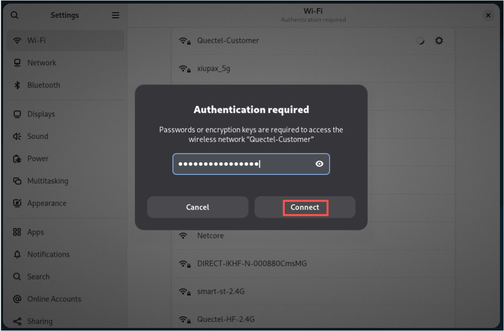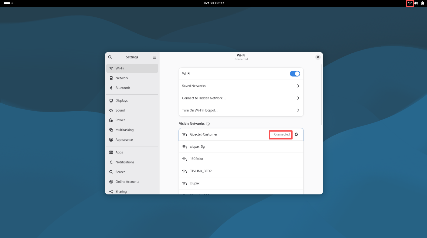 - After successful connection, the corresponding wireless network status will be displayed as Connected, and the WIFI connection icon will appear in the upper right corner