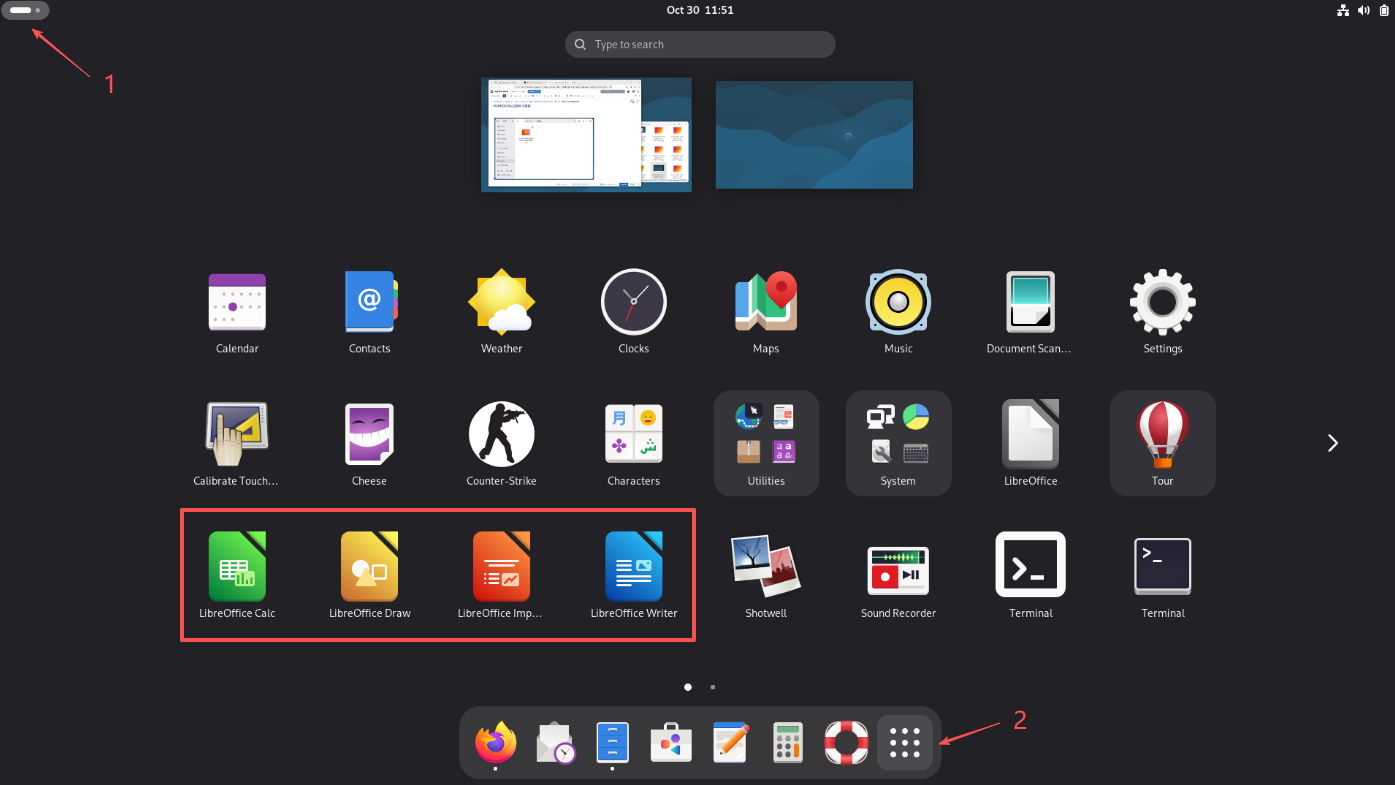 The LibreOffice office software is pre installed on the Debian system and can be run by double clicking with the mouse.