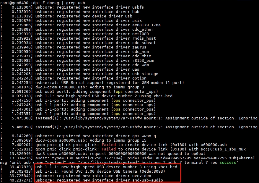 root@qcm6490-idp:/# qusb showpid A4A1: NCM 4EE7: ADB 900E: DIAG 901C: DIAG,UAC2 901D: DIAG,ADB 9015: MASS_STORAGE,ADB 9024: RNDIS,ADB 902A: RNDIS,MASS_STORAGE 902B: RNDIS,ADB,MASS_STORAGE 902C: RNDIS,DIAG 902D: RNDIS,DIAG,ADB 902F: RNDIS,DIAG,MASS_STORAGE 908C: NCM,ADB 90CA: DIAG,UAC2,ADB 90CB: DIAG,UVC,ADB 90CC: DIAG,UAC2,UVC,ADB 90DF: DIAG,UVC 90E0: DIAG,UAC2,UVC 9135: DIAG,QDSS,ADB 9136: DIAG,QDSS F000: MASS_STORAGE F00E: RNDIS - Switch USB mode: