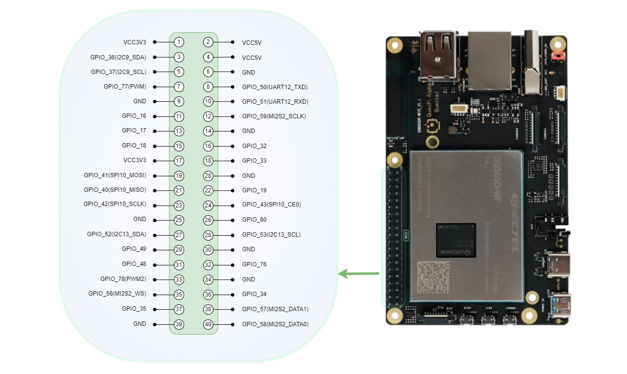 The Quectel Pi H1 single-board computer features a standard 40-pin GPIO expansion interface, supporting various peripheral interfaces such as GPIO, I2C, SPI, UART, PWM, etc. The following sections will introduce how to test the functions of these interfaces.