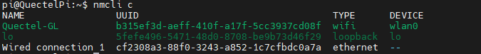 1.View the connection information by running nmcli c in the terminal.