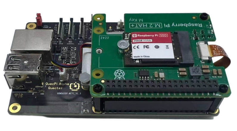 First, install 3 nylon spacers and fix them at the bottom with 3 short screws. Then install the GPIO breakout board and press firmly to ensure all pins are properly seated. Next, fully and evenly insert the PCIe converter cable into the single board computer's PCIe port, then push down the PCIe interface bracket from both sides to firmly secure the PCIe converter cable in place.