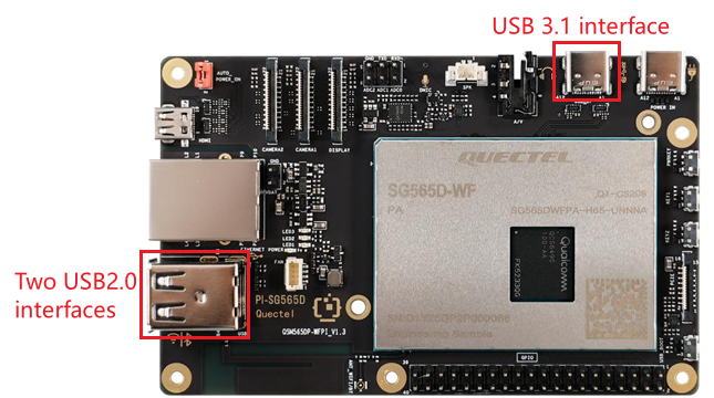 The Quectel Pi H1 single-board computer comes with two standard USB 2.0 Type-A ports and one USB 3.1 Type-C port, compatible with USB 2.0. The maximum data transfer rate of the USB 2.0 ports is 480 Mbps, while the USB 3.1 port can reach up to 5 Gbps.