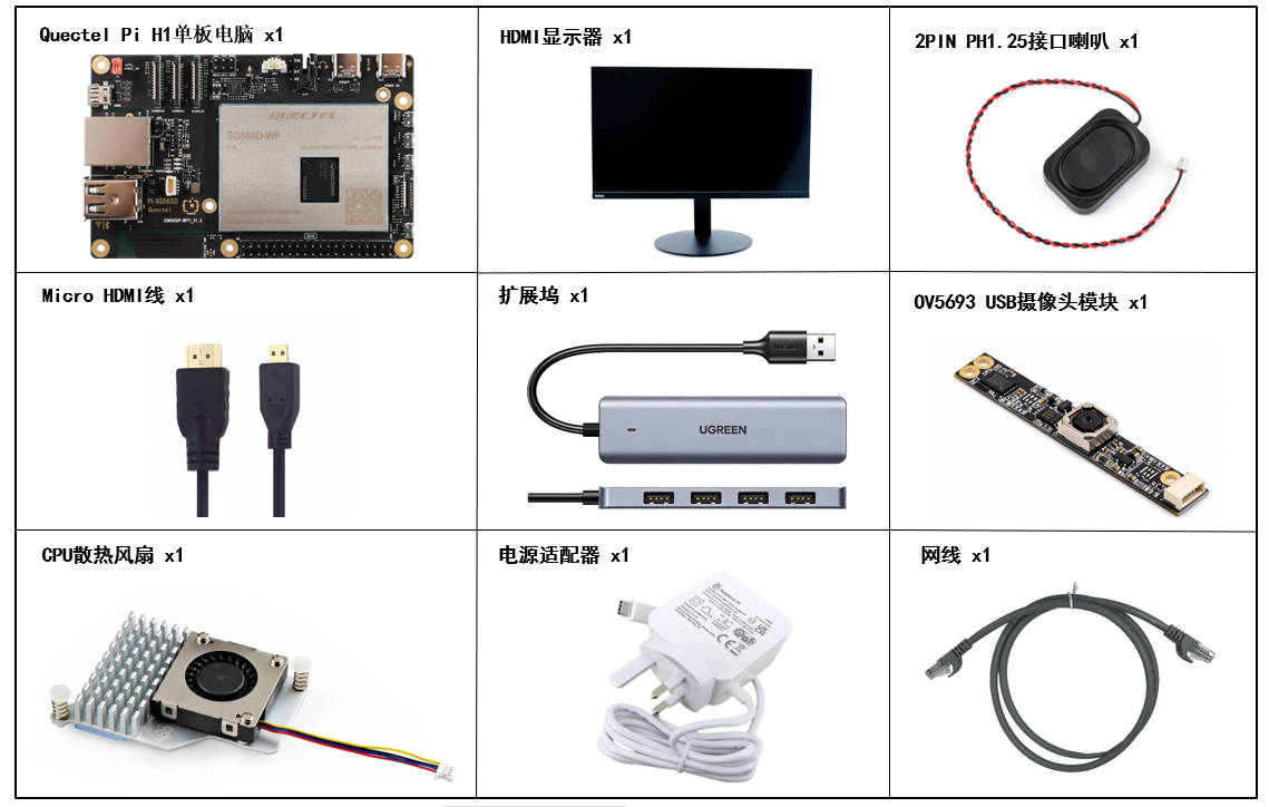 | Quectel Pi H1 智能主控板 | 1块 | Quectel Pi H1智能生态开发板 |