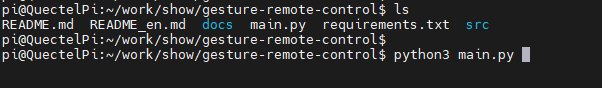 在gesture-remote-control文件夹下执行main.py程序启动脚本。
