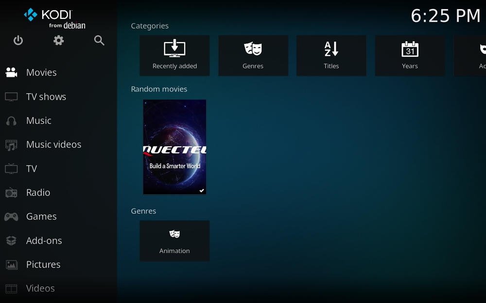 下面介绍如何导入电影、视频等资源在kodi上实现播放。