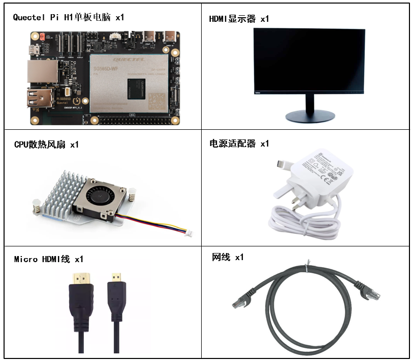 | Quectel Pi H1单板电脑 | 1块 | Quectel Pi H1智能生态开发板 |