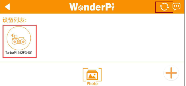 - 连接成功后返回手机APP,稍等片刻,当搜索到下图所示图标时,即为连接成功。(若设备列表下方未显示,可点击右上方的刷新,刷新设备)