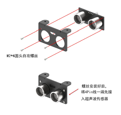 用4颗M2*5圆头自攻螺丝,将发光超声波装至超声波支架上。