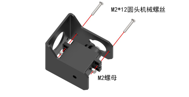 用2颗M2*12圆头机械螺丝和2颗M2螺母把PWM舵机固定云台摄像头支架上。