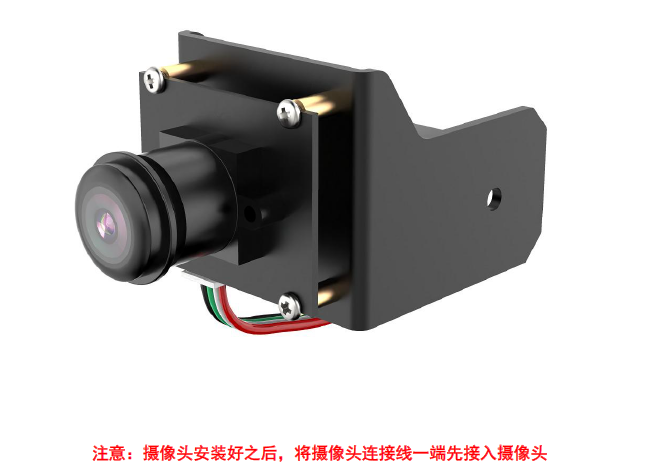 用4颗M2*4圆头机械螺丝和4根M2*8滚花铜柱固定在云台摄像头支架上。然后用2颗M2*4圆头机械螺丝将摄像头固定在云台摄像头支架上。