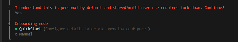 2.在【Onboarding mode】选项中选择【QuickStart】;