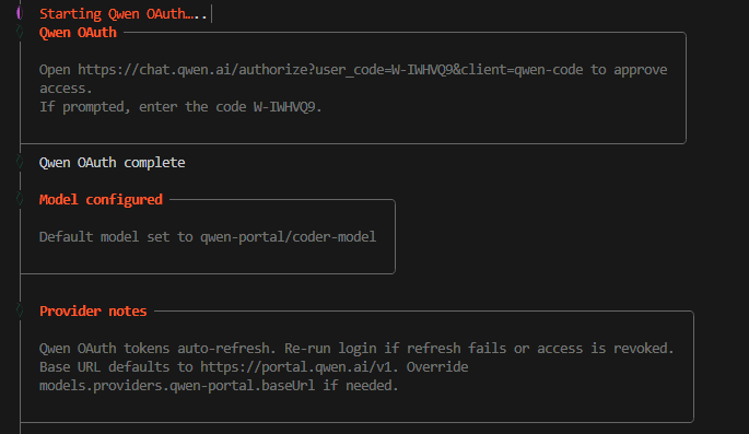4.打开指定网站登录 qwen-code 平台,完成身份认证操作;