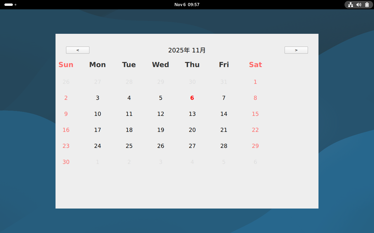 text: calendarRoot.currentYear + "年 " + (calendarRoot.currentMonth + 1) + "月"