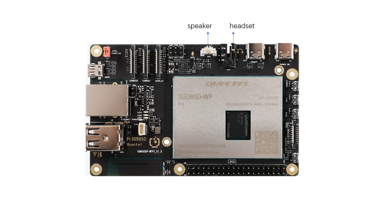 Quectel Pi H1 单板电脑支持的音频接口有 扬声器(speaker)和耳机(headset)。