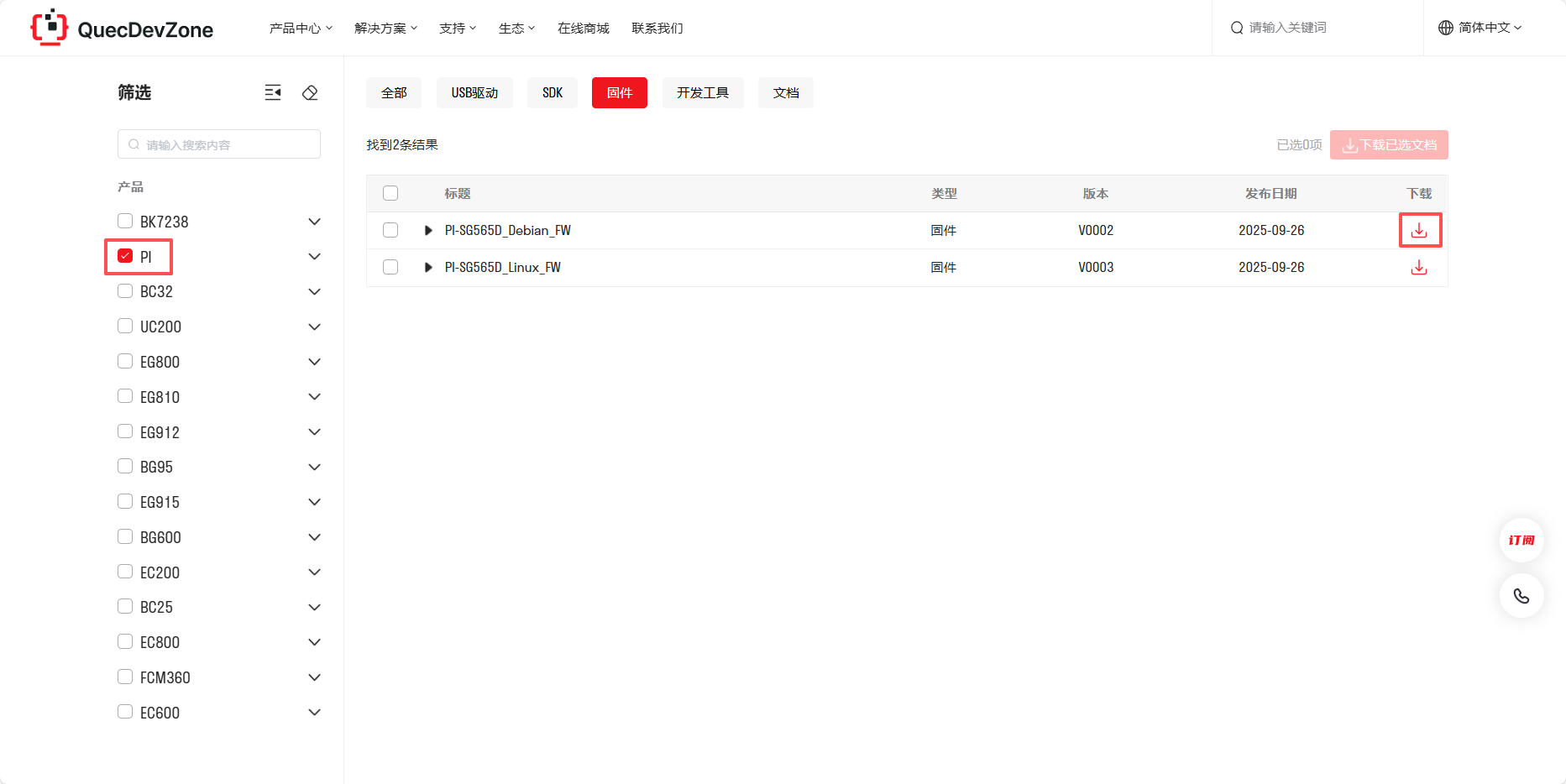 获取,可依次点击顶部导航栏的 “支持 → 固件 → PI” 进行查找下载。