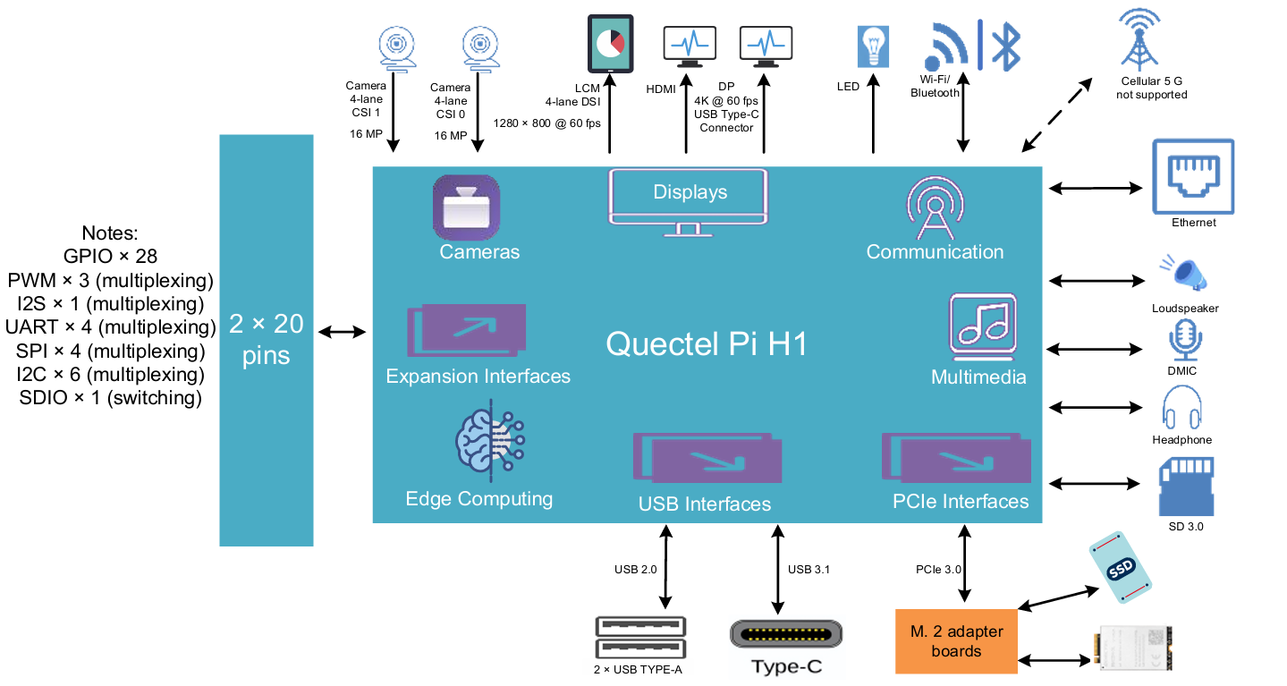 | 18 | PCIe | 用于高速外设的 PCIe 3.0 接口,最高数据速率可达 8 Gbps |