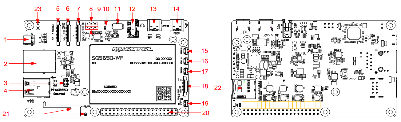 | 摄像头接口 | 2 × FPC 座,4-lane MIPI CSI,最高速率可达 2.5 Gbps/lane |