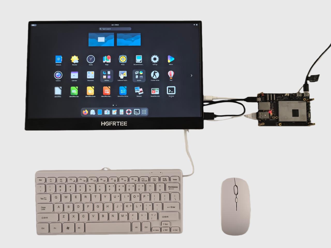 外设连接:将 USB 键盘、鼠标接入单板电脑的两个 USB-A 接口上;若用无线键鼠,将接收器插入 USB 口即可。