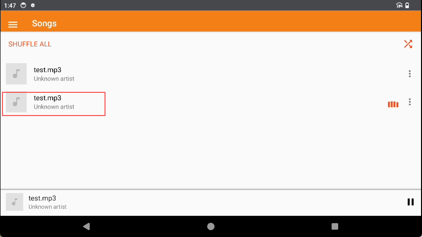 Android system comes pre-installed with a music player, and audio files can be played by following the steps below: