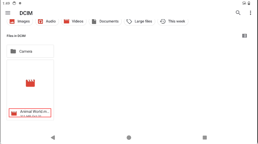 adb push "E:\FeiShu\Animal World.mp4" /sdcard/DCIM #Push relevant videos to the DCIM directory of the development board's SD card
