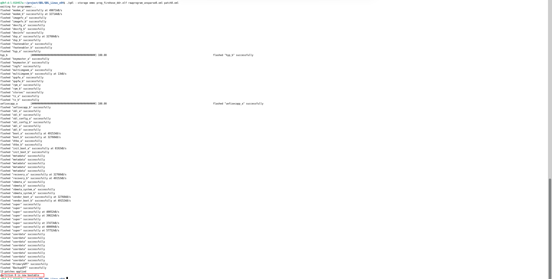./qdl --storage emmc prog_firehose_ddr.elf rawprogram_unsparse0.xml patch0.xml