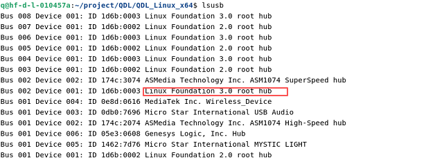 - After successful flashing, run the lsusb command to see device information in the terminal window, as shown in the following figure: