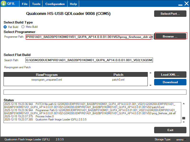 - Click the "Browse" button and select the "prog_firehose_ddr.elf" file.