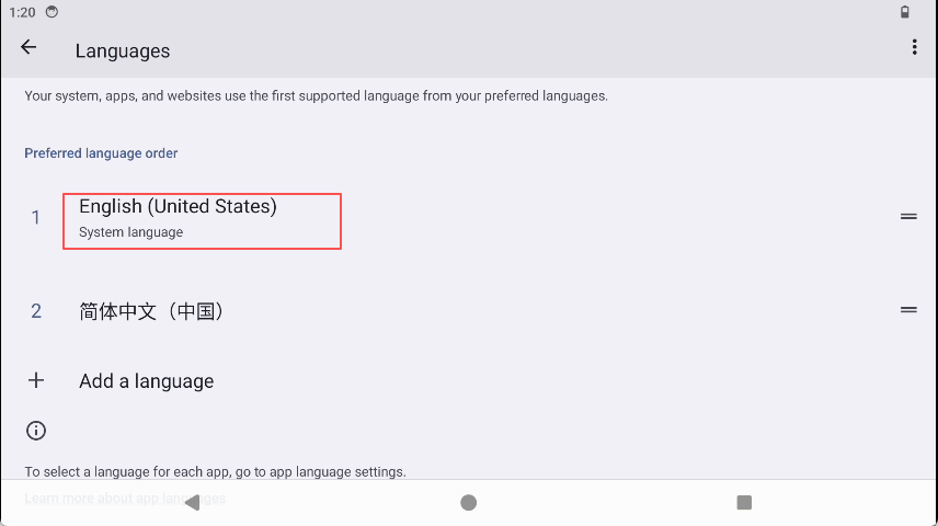 Navigate to "Settings"->"System"->"Languages" and select the language you need.