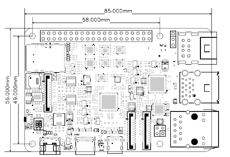 | USB interface | 1 × USB 3.0 Type-C interface with a data transfer rate up to 5 Gbps, used for firmware flashing (requires shorting BOOT) and host mode communication 2 × Standard USB 3.0 Type-A interfaces, host mode only, data transfer rate up to 5 Gbps 2 × Standard USB 2.0 Type-A interfaces, host mode only, data transfer rate up to 480 Mbps 1 × USB Type-C interface, main power supply interface |