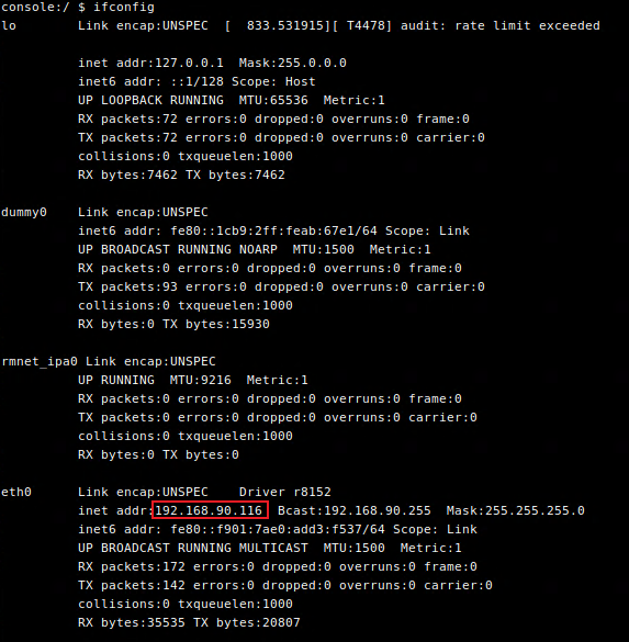 输出示例:inet addr:后面的192.168.90.116为本机的ip地址。