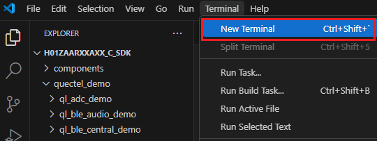 Open QuecOpen SDK with VS Code (File → Open Folder... → H01ZAARXXAXX_C_SDK).