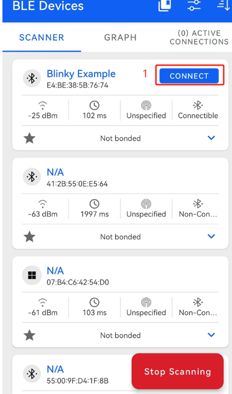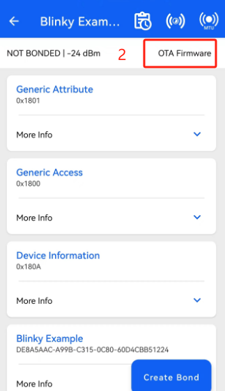 - If the upgrade fails, you can select the "OTA" device in the scan interface, and then click "CONNECT" to retry the upgrade.